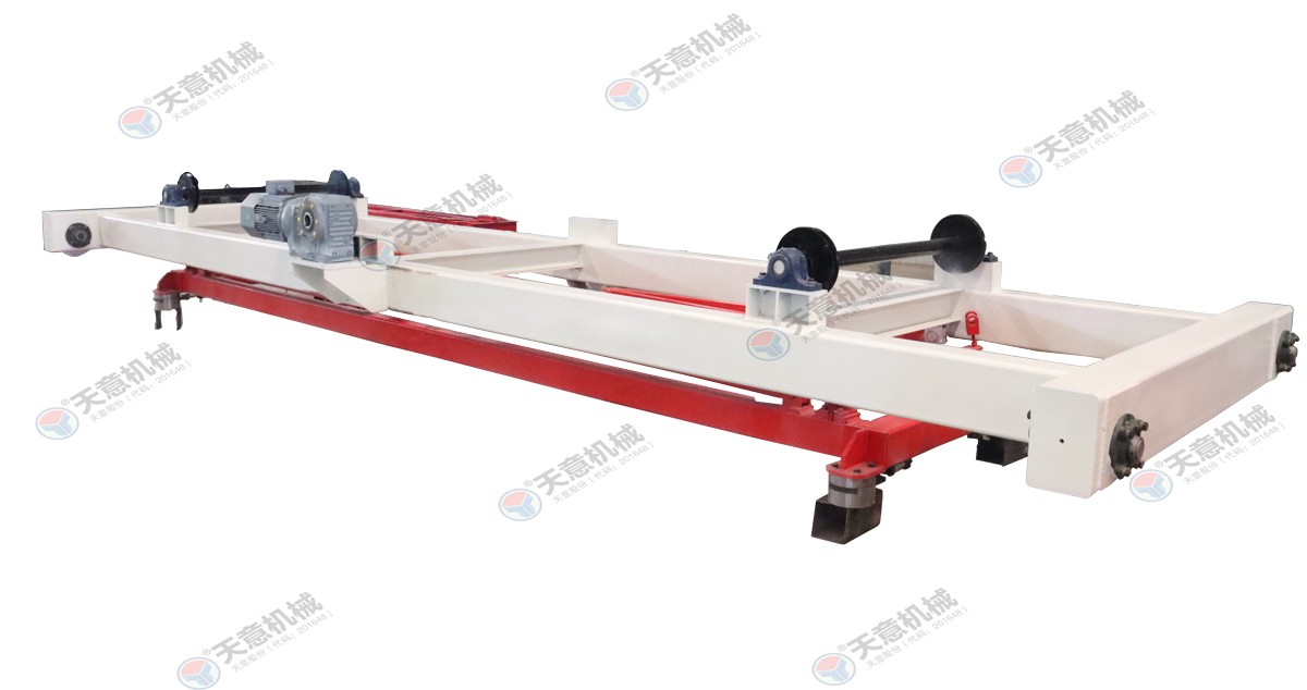 切割小車用于承載坯體為切割提供動力;切割工段空翻脫模機將??蚍D90°,放在第一輛切割小車支座上進行脫模,脫模后的??蚺c清理后的側模板進行合模,合膜后的空??虮坏踹\至模具回程軌道上進行涂油處理,等待下一...